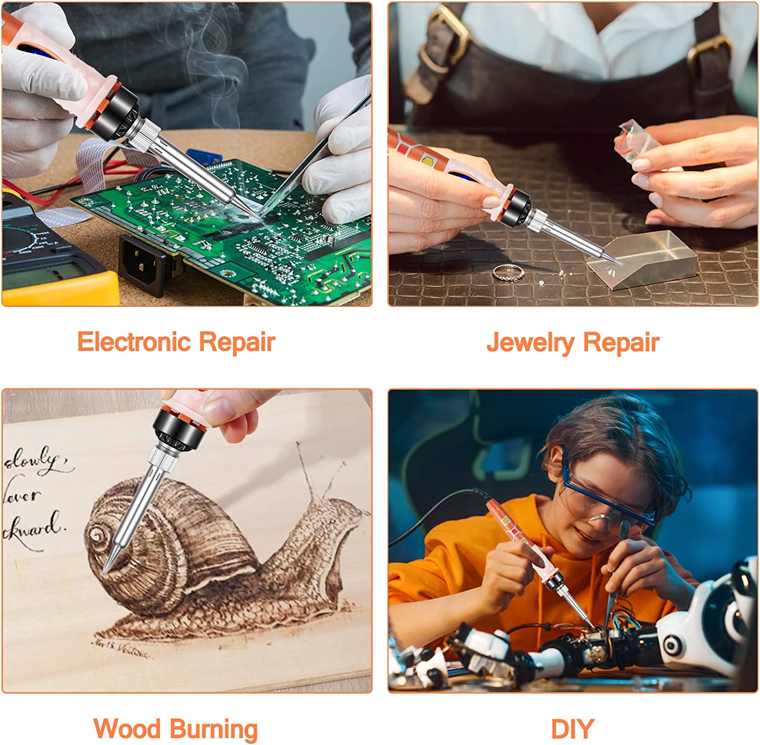 Multi-Use Soldering: This soldering kit is a wonderful option for tiny electronic work, jeweler, guitar, watches, computer hardware, and do-it-yourself home repairs. These soldering iron tools can also be used to carve words and create pyrography. It is appropriate for both novices and electronics enthusiasts.